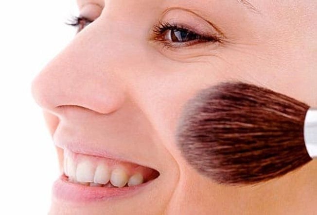 Use a creamy blush on the apples of your cheeks and blend it toward your temples to add dewy freshness to sallow skin. Brush a little bronzer on the high points of your face — nose, chin, and forehead — to add more warmth.